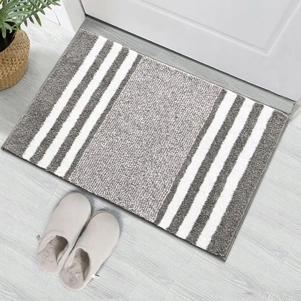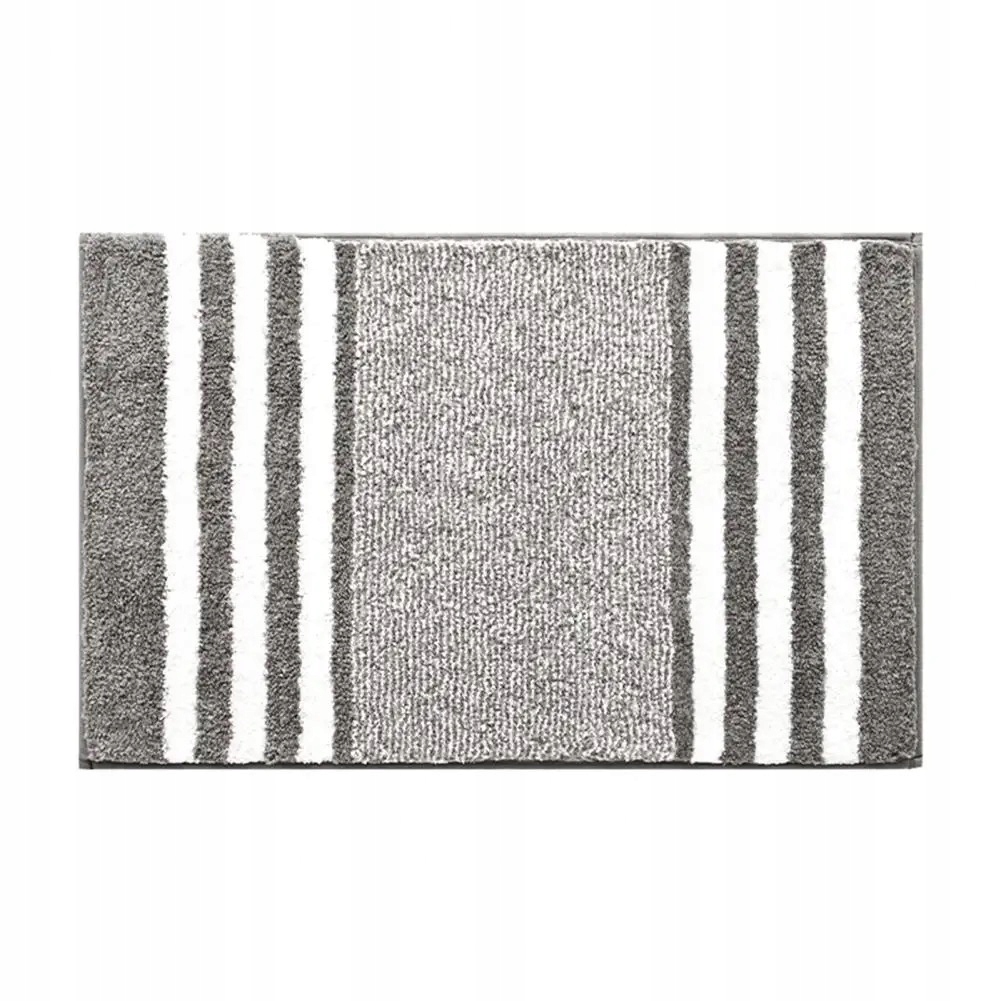 Dywanik Łazienkowy Paski Biało- Szary Mikrofibra 50x80 Antypoślizgowy
