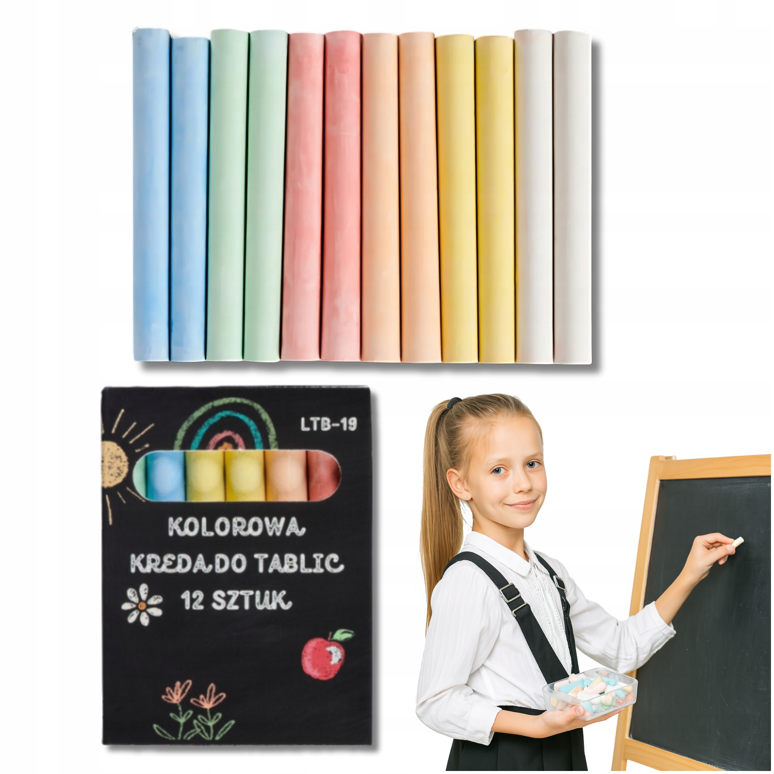 KOLOROWA KREDA DO PISANIA KOLOROWANIA DO TABLIC KREDOWYCH 12SZT LTB-19